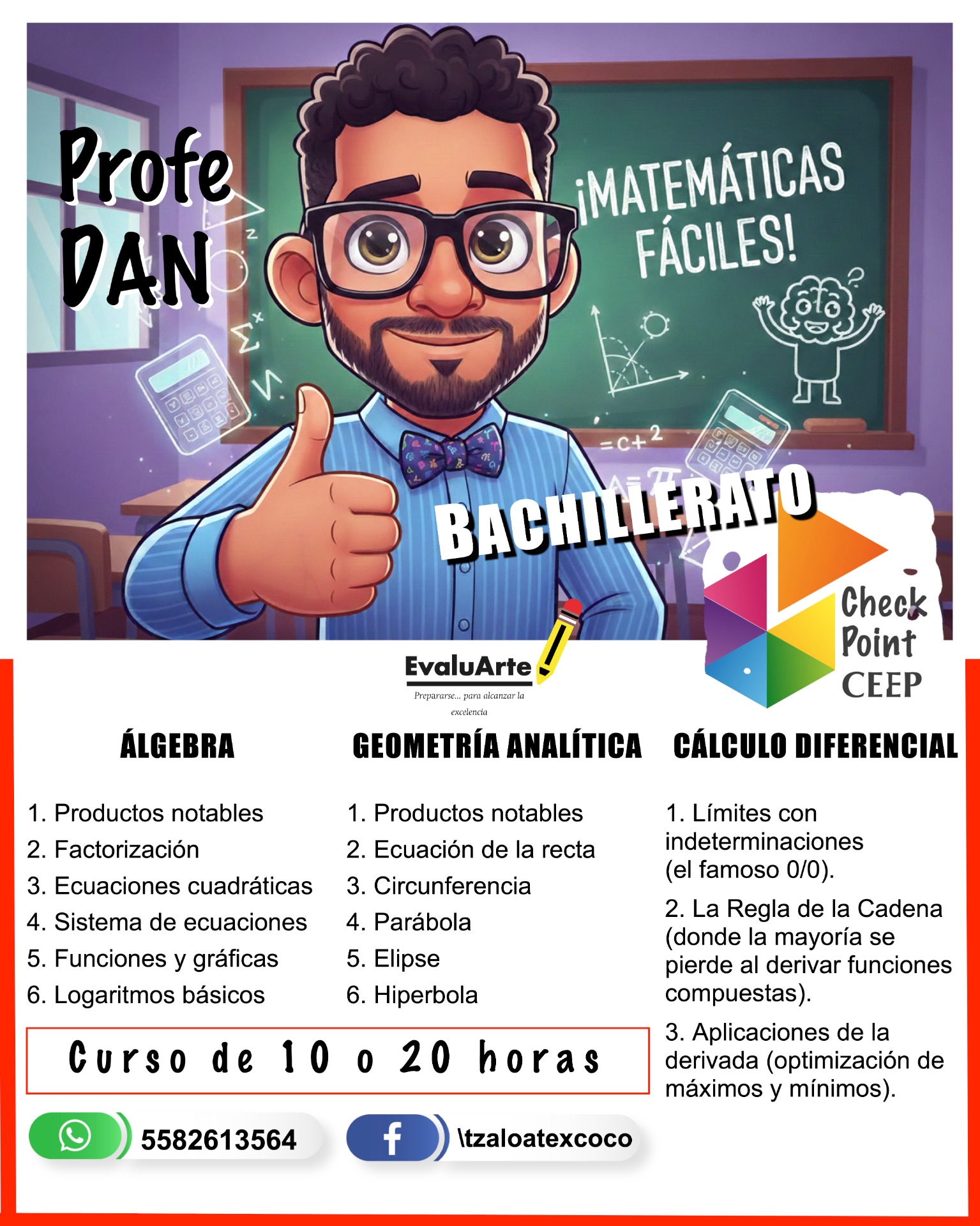 Sabemos que el bachillerato puede ser un reto, especialmente cuando te enfrentas a derivadas complejas o ecuaciones que parecen no tener fin. Por eso, en EvaluArte y Check Point CEEP, hemos diseñado un espacio donde aprender matemáticas es, por fin, fácil y directo.